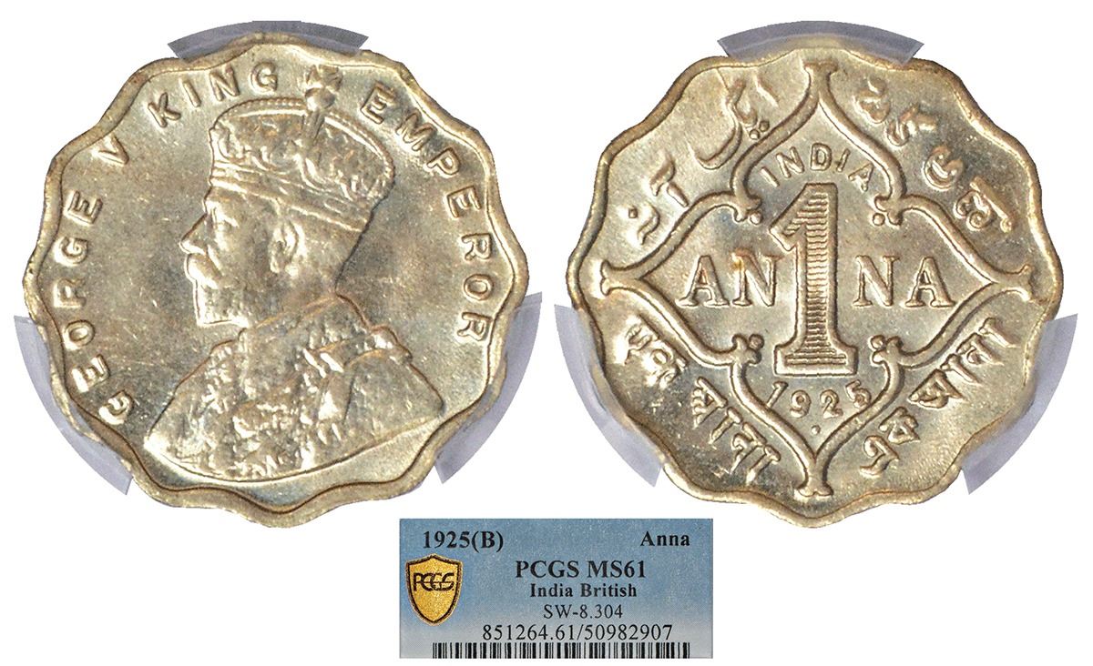 British India: George V, cupro-nickel 1 anna, 1925, Bombay mint, dot, PR 953; GK 1154.