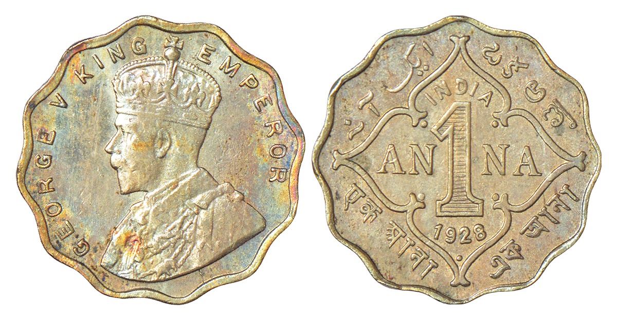 British India: George V, cupro-nickel 1 anna, 1928, Bombay mint, dot, PR 956; GK 1160, 3.86g.