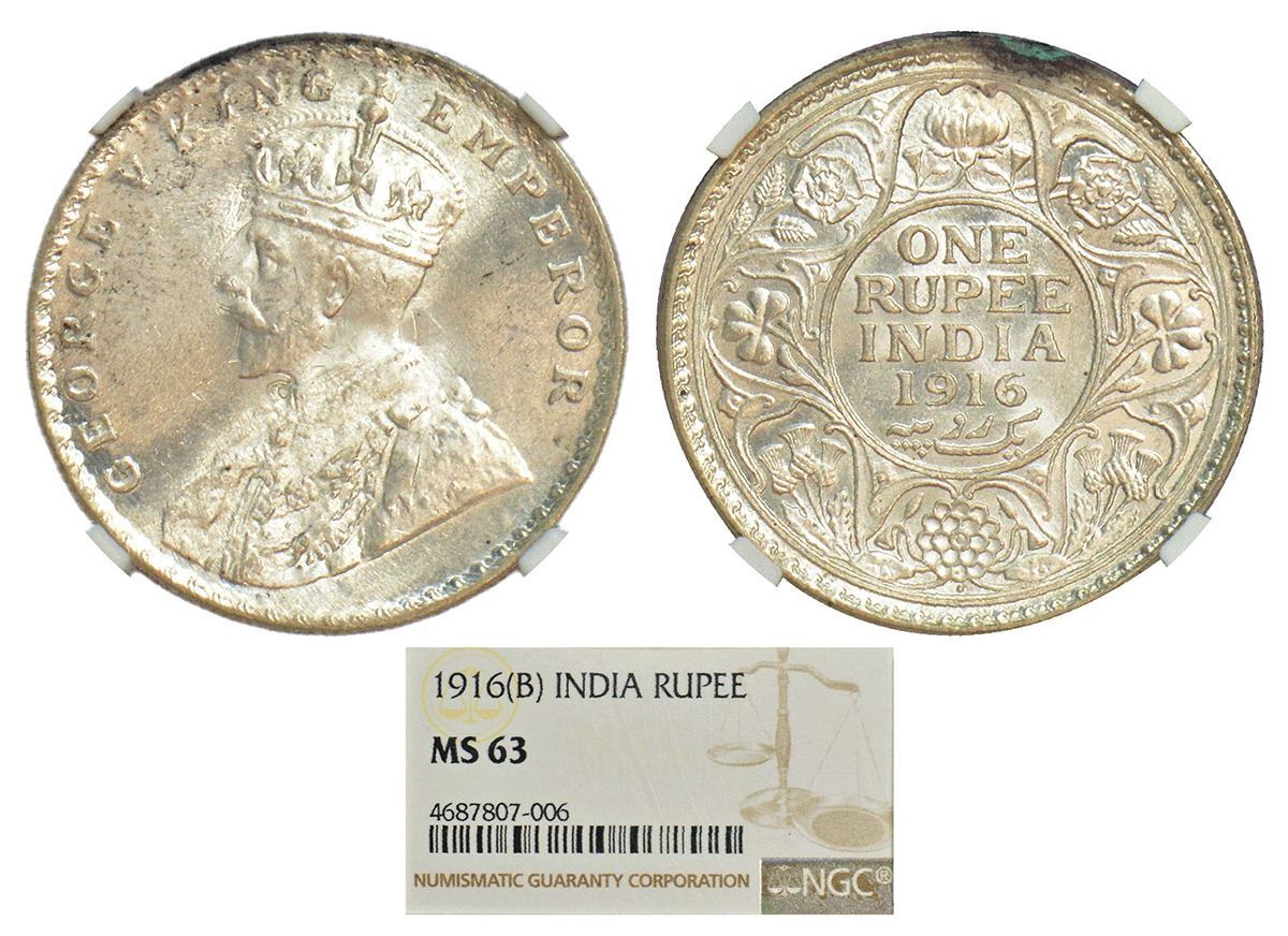 British India: George V, silver rupee, 1916, Bombay mint, dot, PR 222; GK 1034.