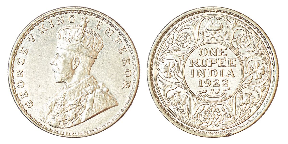 British India: George V, silver rupee, 1922, Bombay mint, dot, PR 228; GK 1044, 11.60g. Good very fine, Very scarce.