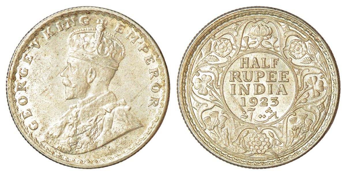 British India: George V, silver ½ rupee, 1923, Calcutta mint, no dot, PR 326; GK 1061.