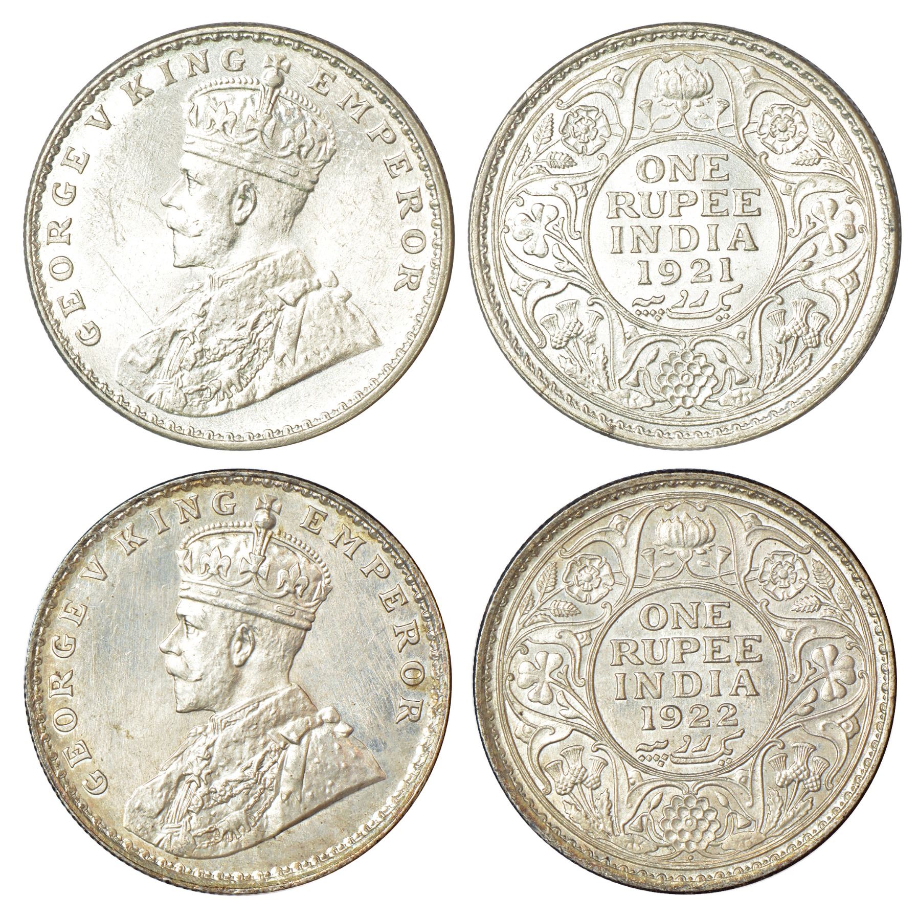 George V, silver rupee (2), Bombay mint, 1x 1921, PR 227, GK 1043, 11.62g and 1x 1922, PR 11.60, GK 1044, 11.60g. (2 coins)