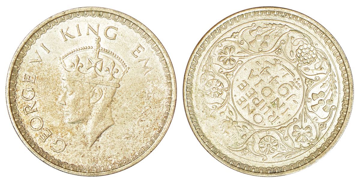 British India: George VI, half silver rupee, 1944, Bombay mint, C/III/diamond, GK 1278, 11.68g. Die-axis at 8 o'clock on reverse.