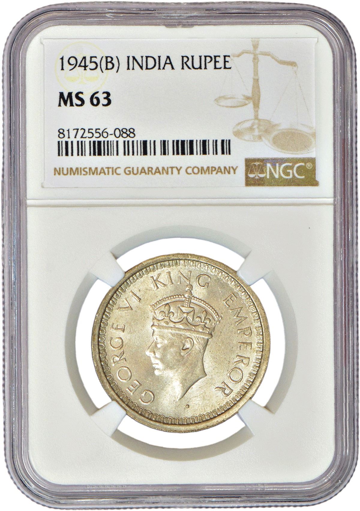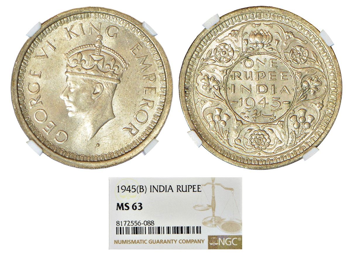 George VI, half silver rupee, 1945, Bombay mint, D/II/dot, normal 5, PR 246; GK 1286.