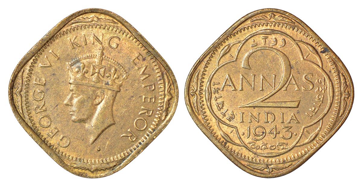 British India: George VI, nickel brass 2 annas, 1943, Bombay mint, head type II, PR 919; GK 1360-136