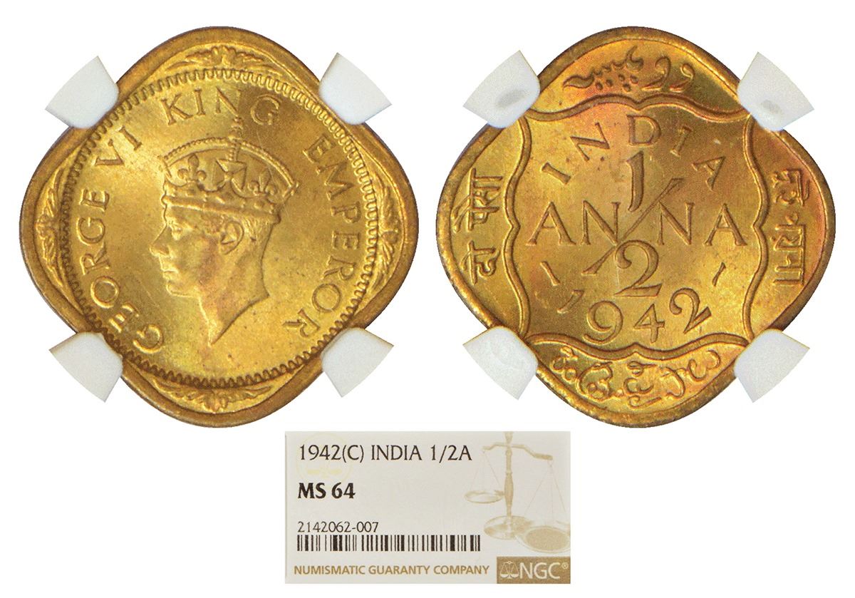 George VI, nickel-brass ½ anna, 1942, Bombay mint, PR 990; GK 1404.