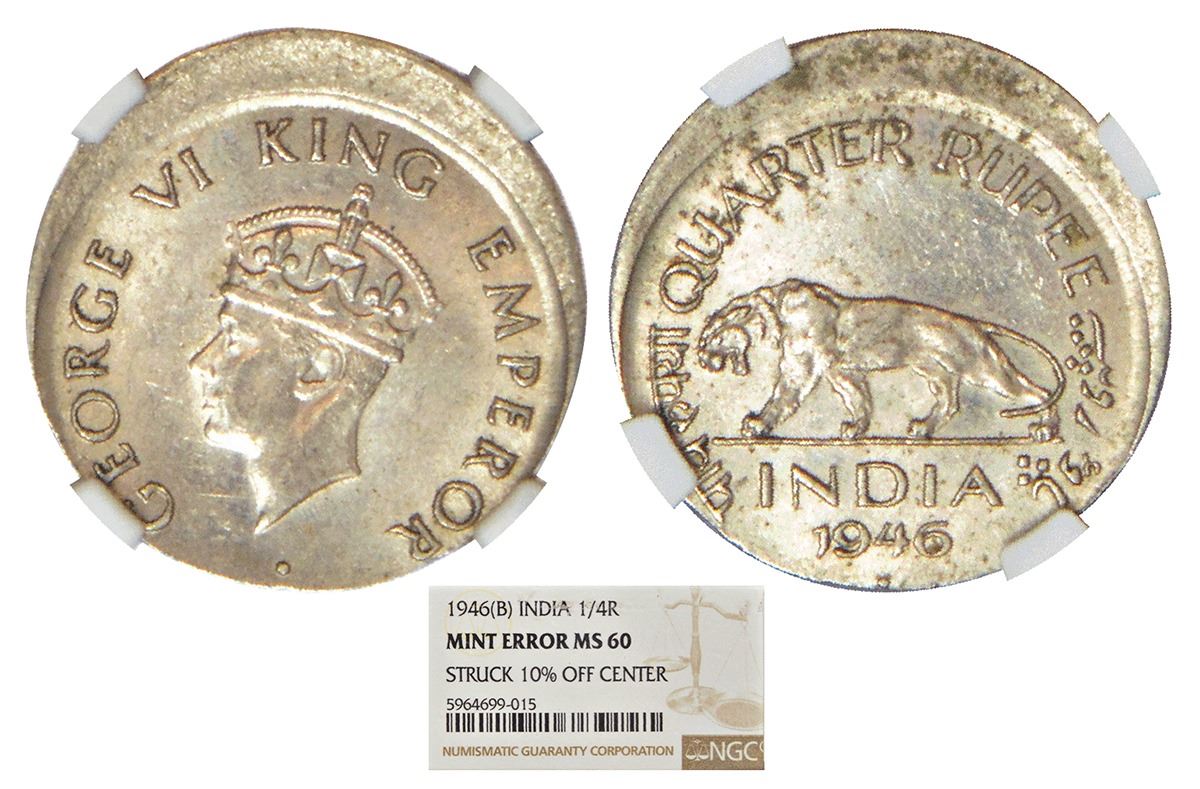 British India: George VI, nickel ¼ rupee, error, 1946, Bombay mint, head type II, diamond, GK 1346, die-shifted on both sides.