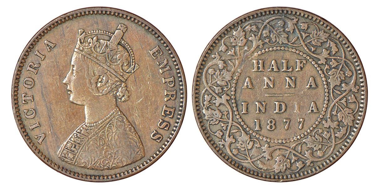 British India: Victoria Empress, copper ½ anna, 1877, Bombay mint, bust 'B', PR 586; GK 820, 12.92g.