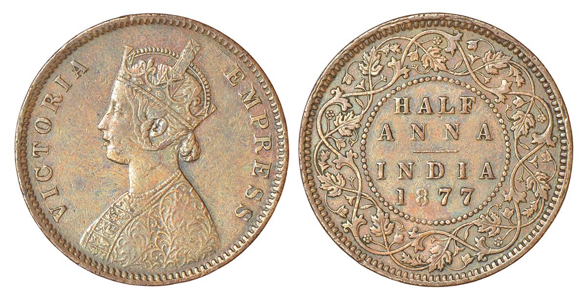 British India: Victoria Empress, copper ½ anna, 1877, Calcutta mint, bust 'C', PR 585; GK 821, 12.96g.
