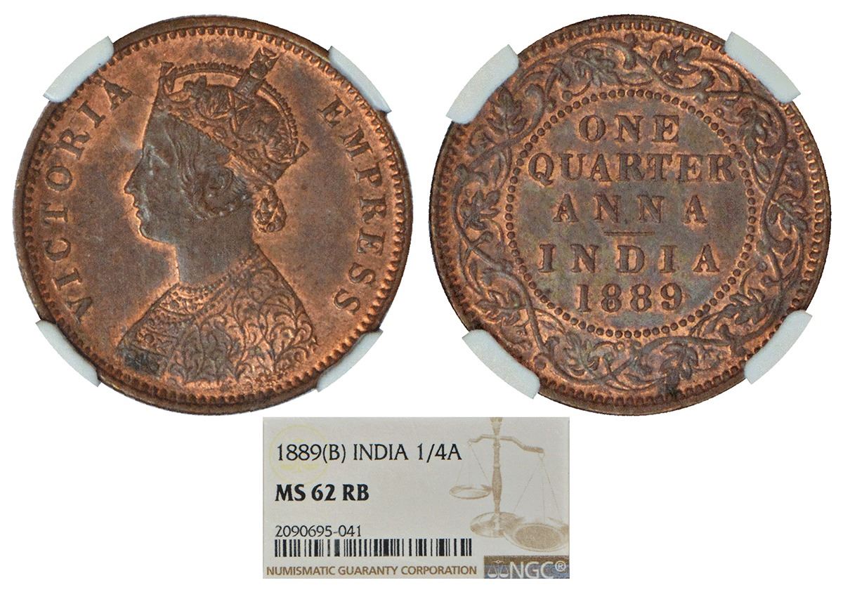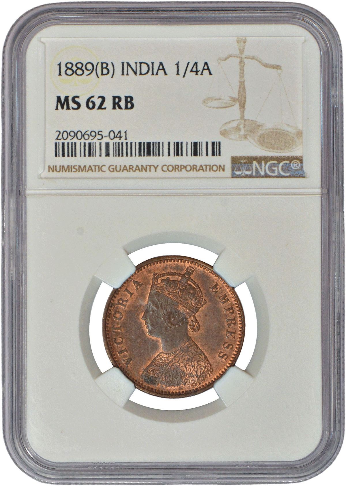 British India: Victoria Empress, copper ¼ anna, 1889, Bombay mint, B/I/no mint mark, PR 644, GK 847.