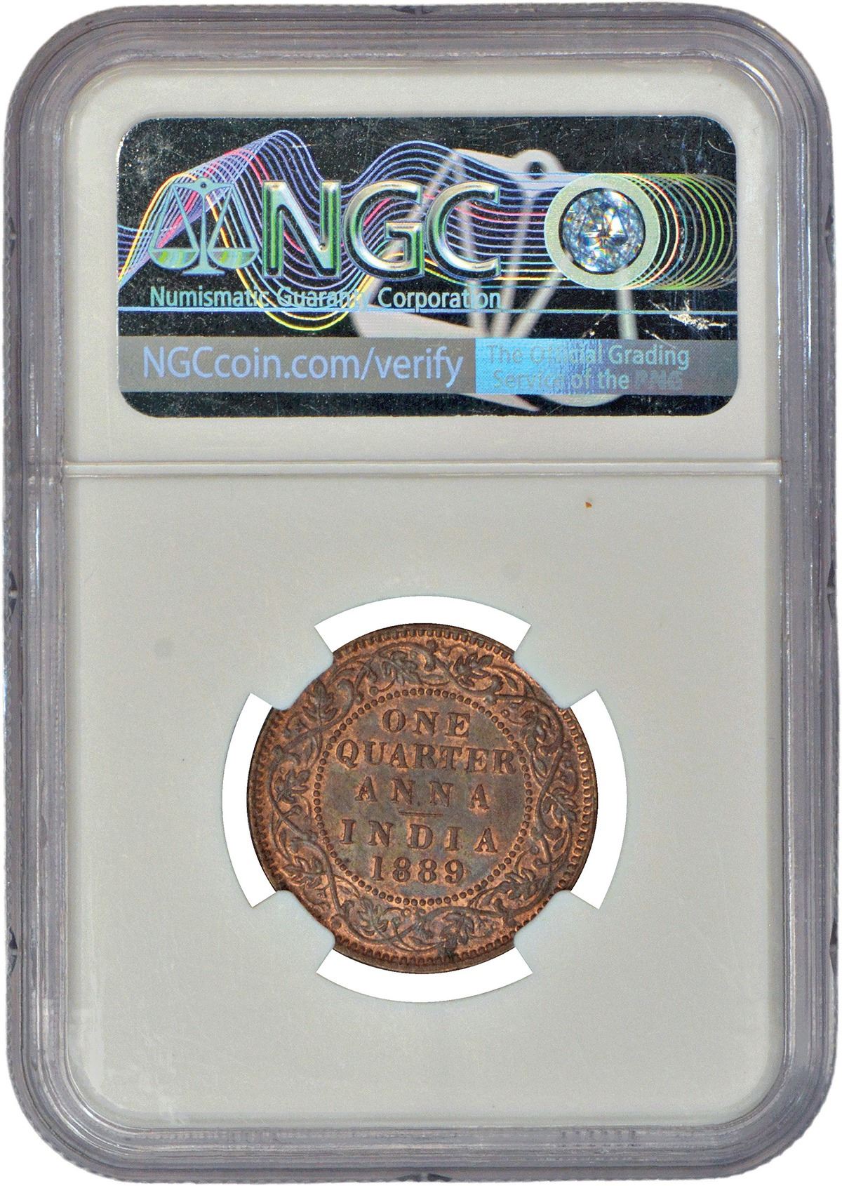 Victoria Empress, copper ¼ anna, 1889, Bombay mint, B/I/no mint mark, PR 644, GK 847.