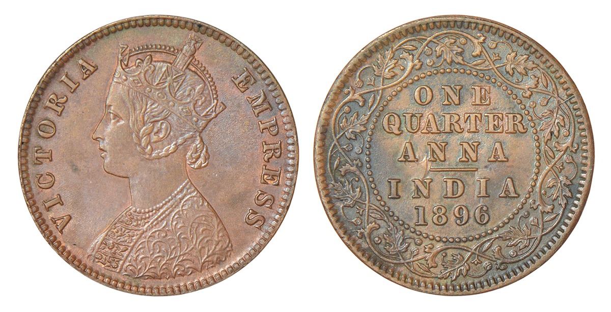 British India: Victoria Empress, copper ¼ anna, 1896, Calcutta mint, B/II/no mint mark, PR 629; GK 8