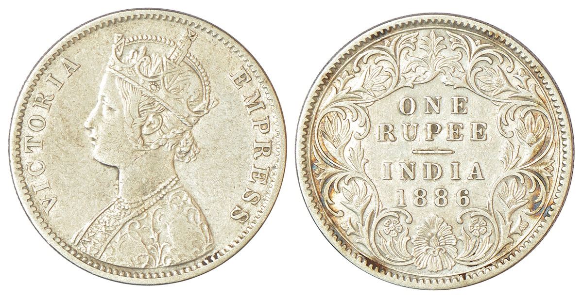 Victoria Empress, mule, silver rupee, 1886, Calcutta mint, C2/I/'C' incused, unlisted in PR; GK 532.