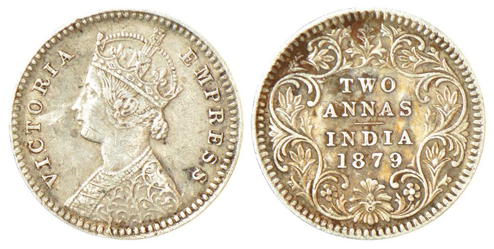 Victoria Empress, silver 2 annas, 1879, Calcutta mint, B/II/'C' incused, PR 494; GK 753.