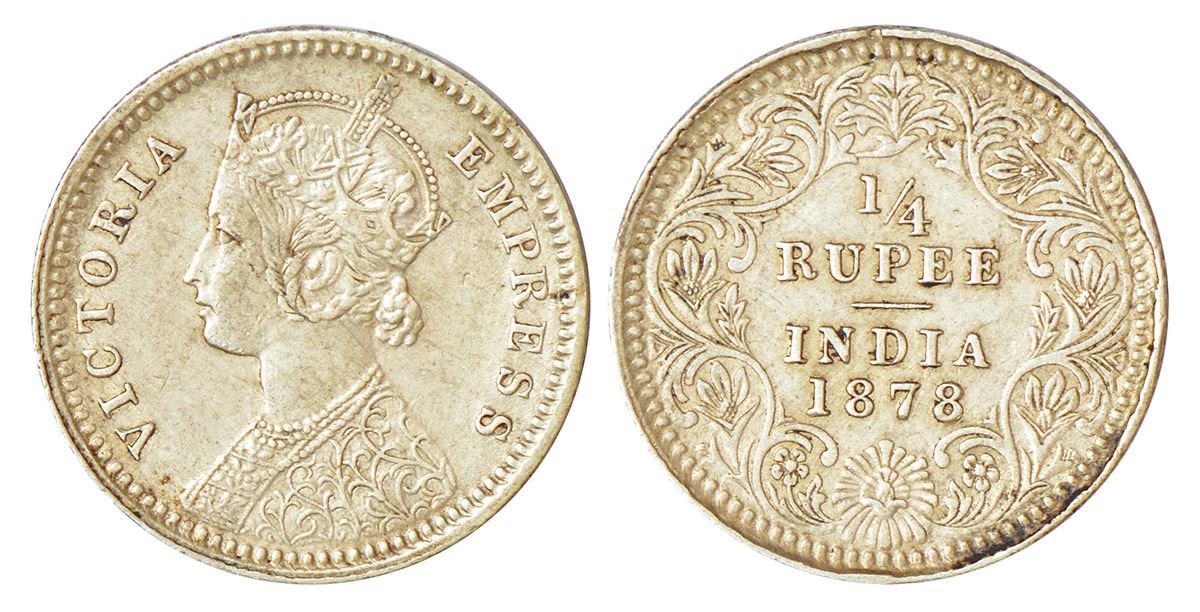 British India: Victoria Empress, silver ¼ rupee, 1878, Calcutta mint, C/II, no mint mark, PR 383; GK