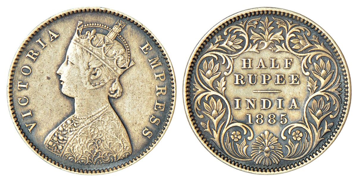 Victoria Empress, silver ½ rupee, 1885, Calcutta mint, A/I/'C' incused, PR 269; GK 632.