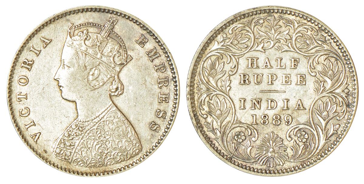 Victoria Empress, silver ½ rupee, 1889, Calcutta mint, A/I/'C' incused, PR 273; GK 645.