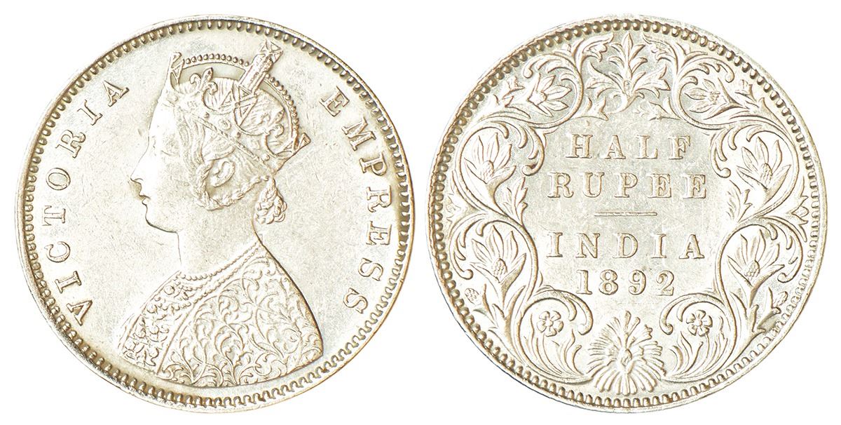 Victoria Empress, silver ½ rupee, 1892, Bombay mint, A/I/'B' incused, PR 302; GK 646.