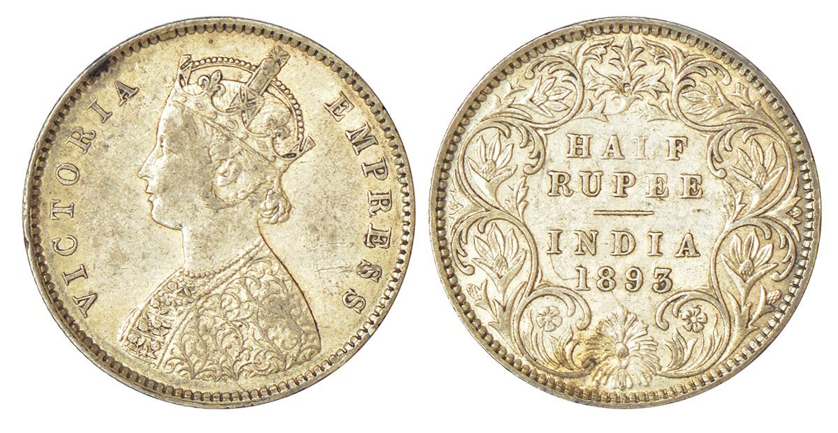 British India: Victoria Empress, silver ½ rupee, 1893, Bombay mint, A/I/'B' incused, PR 303; GK 648,