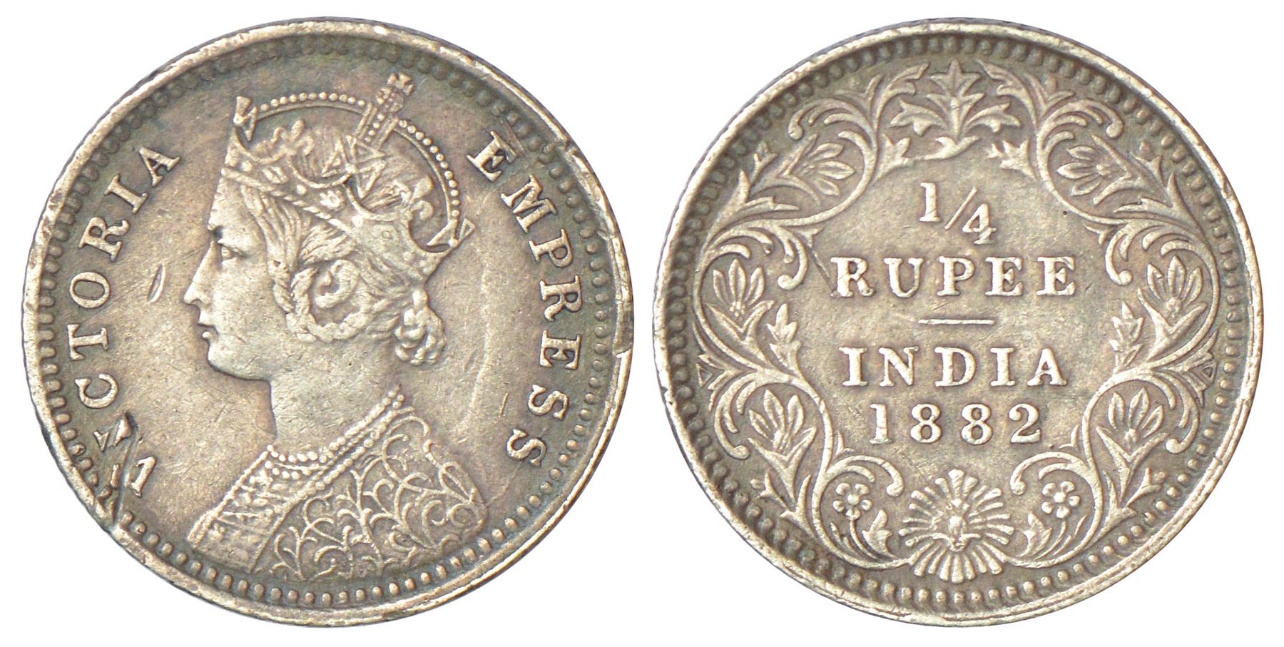 British India, Victoria Empress, silver ¼ rupee, AD 1882, Calcutta mint, PR 387, GK 687, 2.89g,