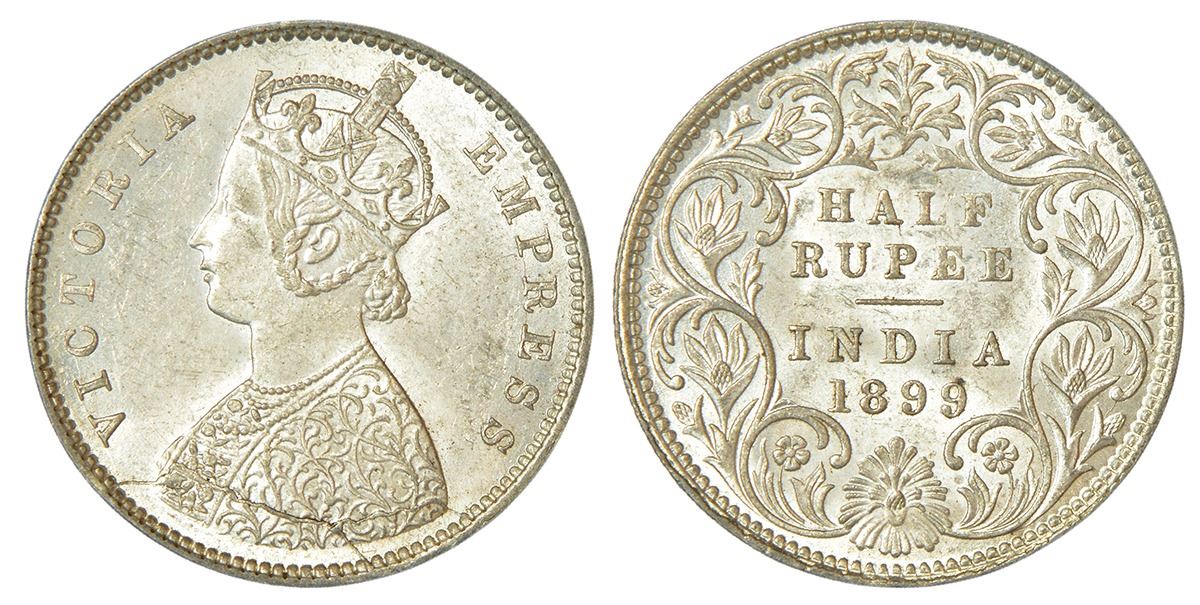 British India: Victoria Empress, silver ½ rupee, error, 1899, Bombay mint, A/I/'B' incused