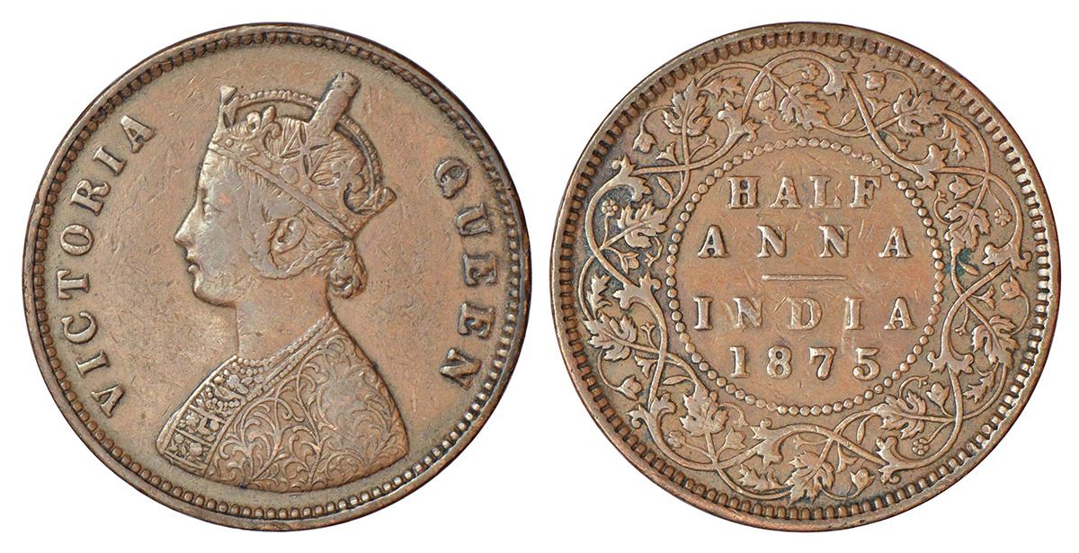 British India: Victoria Queen, copper ½ anna, 1875, Calcutta mint, B/II, PR 583; GK 818, 12.96g.