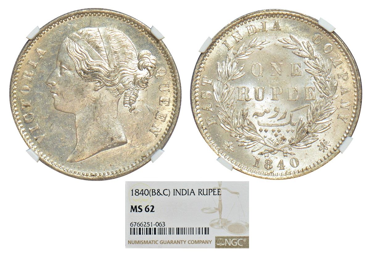 British India: Victoria Queen, divided legend, silver rupee, 1840, Calcutta/Bombay mint, 'W.W. ' rai