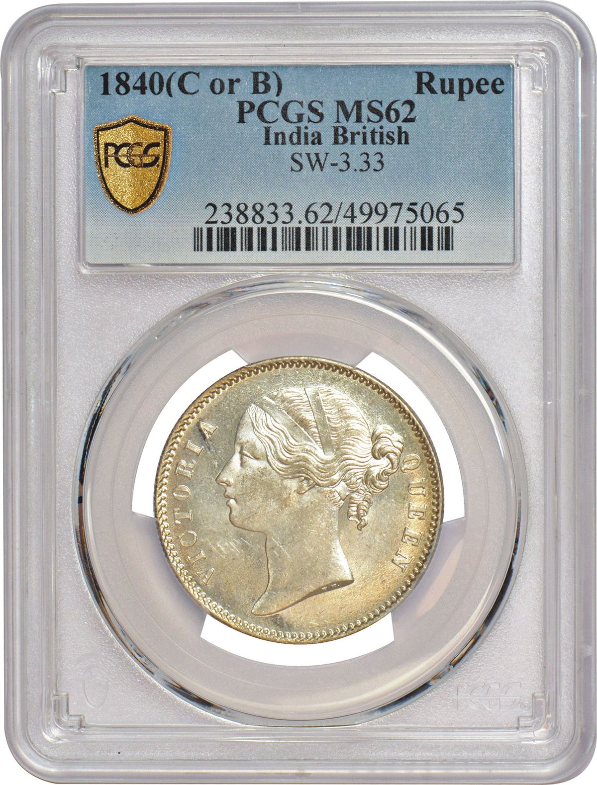 British India: Victoria Queen, divided legend, silver rupee, 1840, Calcutta/Bombay mint, 'W.W. ' rai
