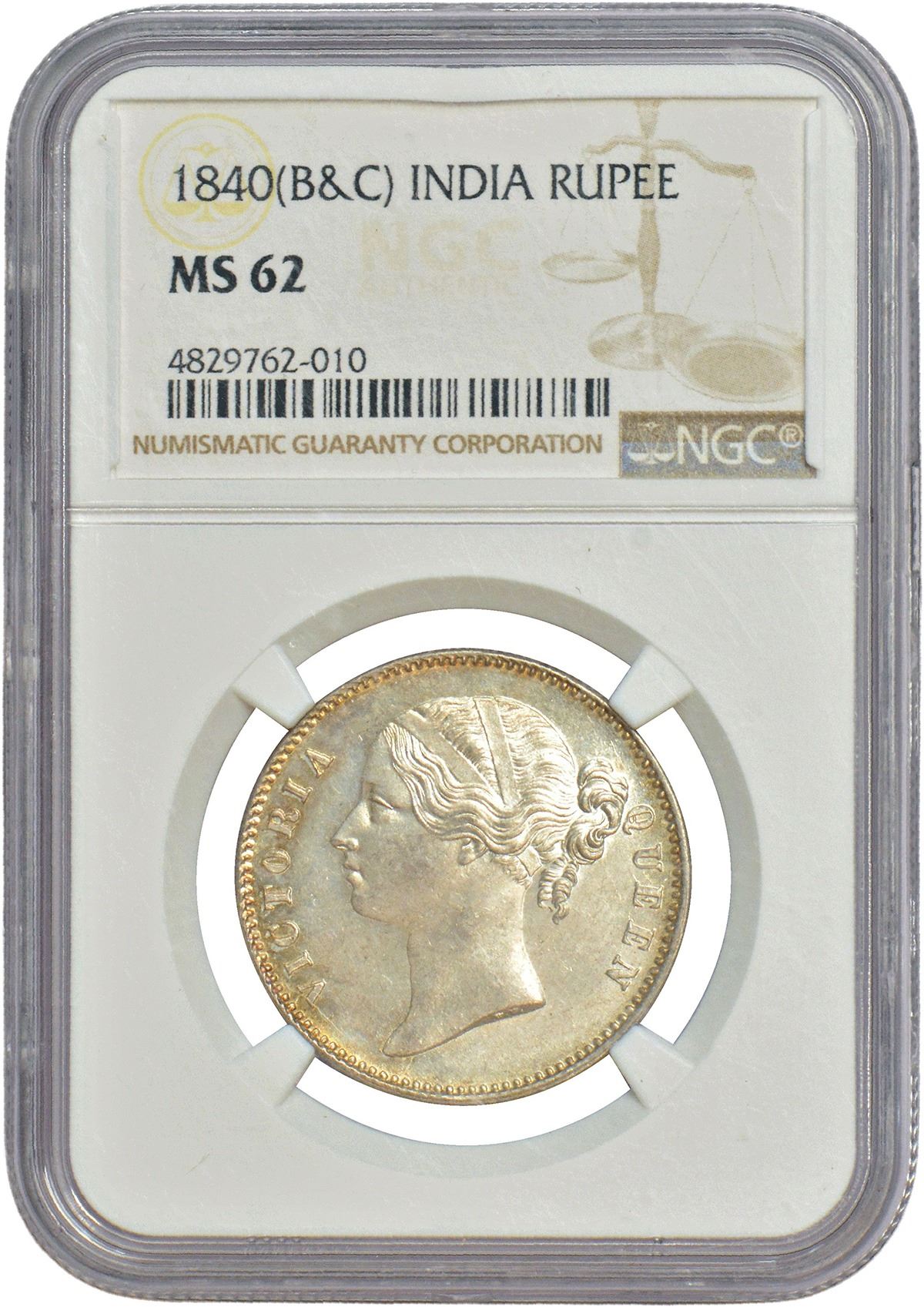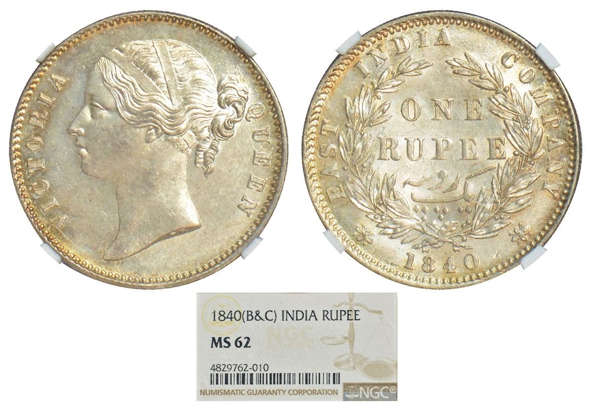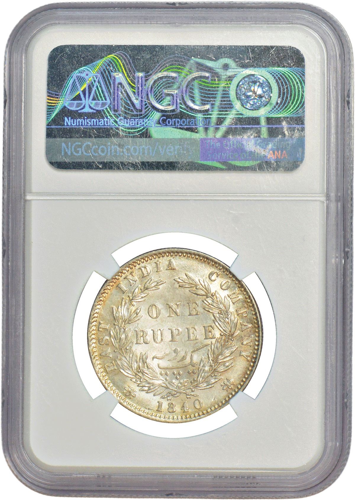 British India: Victoria Queen, divided legend, silver rupee, 1840, Calcutta/Bombay mint, W.W. raised