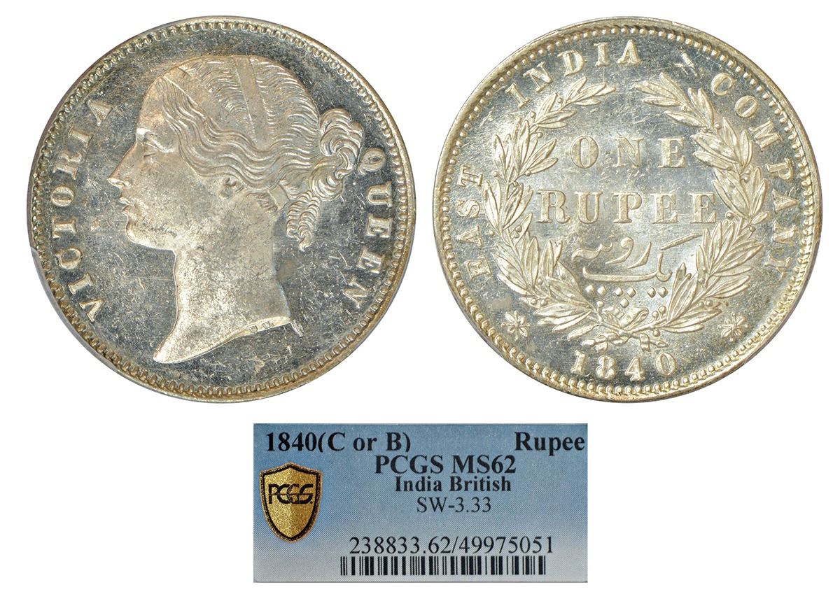 British India: Victoria Queen, divided legend, silver rupee, 1840, Calcutta/Bombay mint, W.W. raised