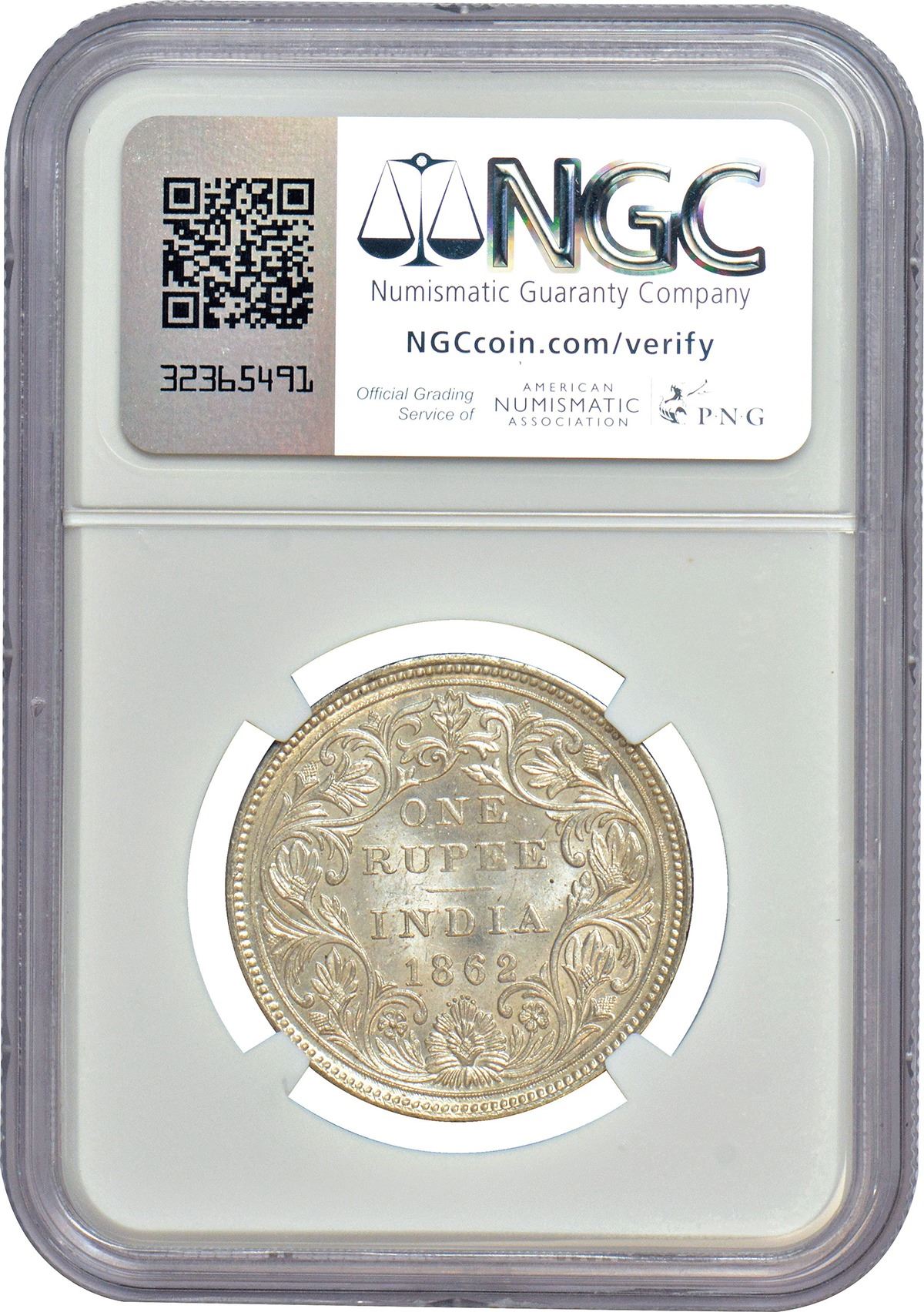 British India: Victoria Queen, silver rupee, 1862, Bombay mint, A/II/0/5, without initial J, PR 85; GK 316.