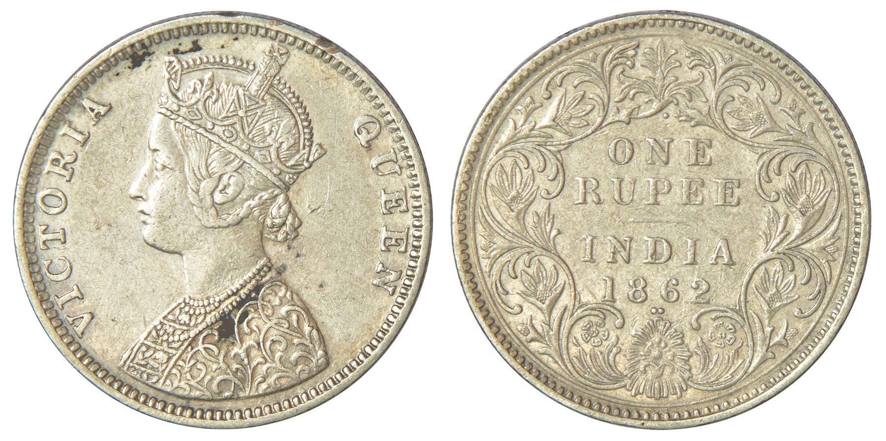 British India, Victoria Queen, silver rupee, AD 1862, Bombay mint, C/I/1/2, PR 104, GK 359, 11.51g.
