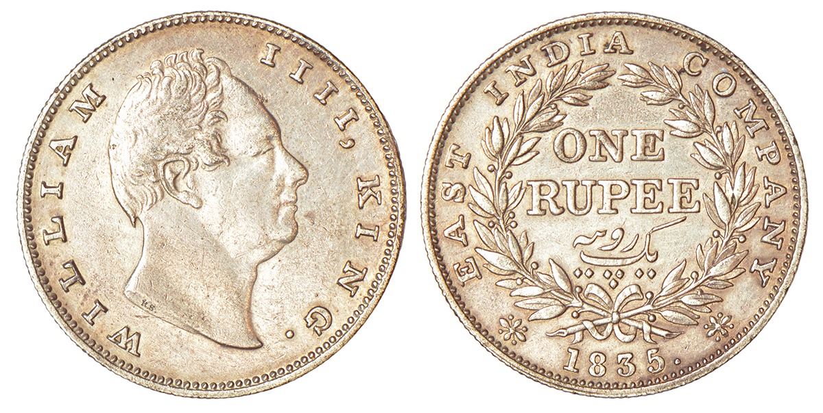 British India: William IV, silver rupee, 1835, Calcutta mint, 'R.S.' incused, B/II(ii), bud leaves,