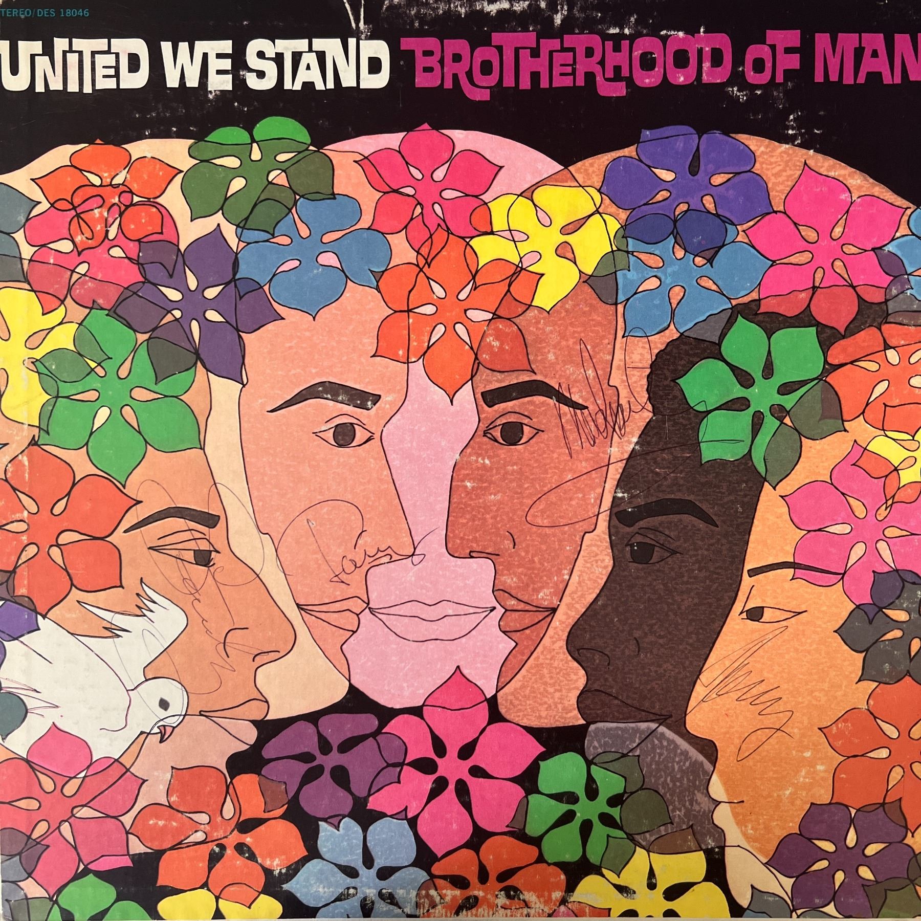 Brotherhood Of Man United We Stand signed album autographed by John Goodison, Tony Hiller, Sunny Leslie and Martin Lee. 12x12 inches vinyl included