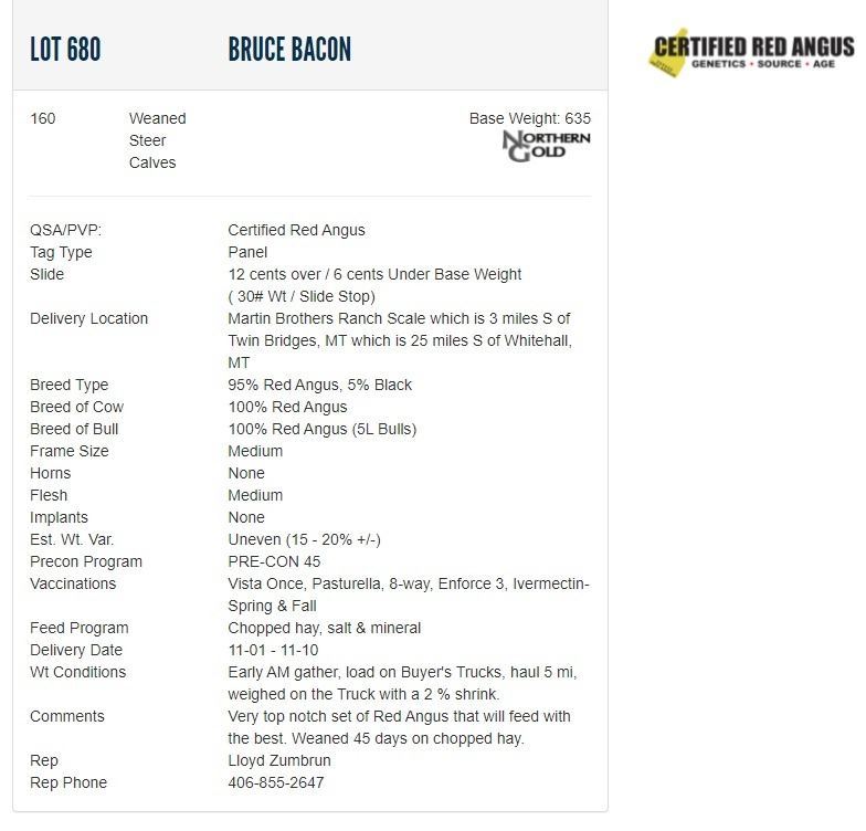 Bruce Bacon - 160 Weaned Steers; Base Weight: 635