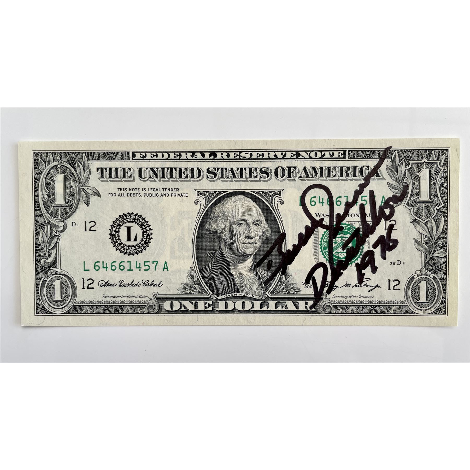 "This autograph is certified by a 20 year plus member of IADA (International Autograph Dealers Association) , UACC (Universal Autograph Collectors Club), IACC - International Autograph Collector Club), Manuscript Society, SAG (Screen Actors Guild), Southern California Motion Picture Council, APS (American Philatelic Society), ASCC (American Society Of Check Collectors), AFDCS (American First Day Cover Society), Hollywood Heritage Museum, and the Golden State Boxing Association. Additionally a me
