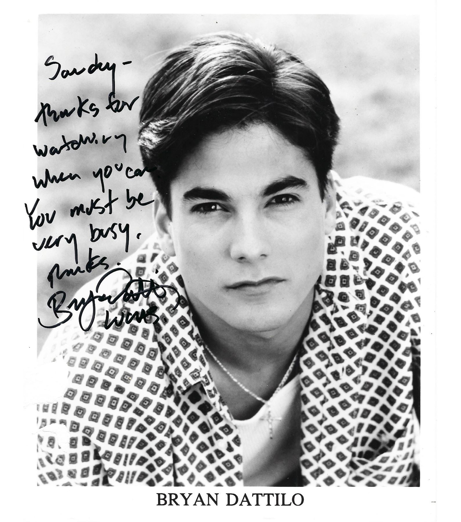 Bryan Dattilo signed photo. 8x10 inches