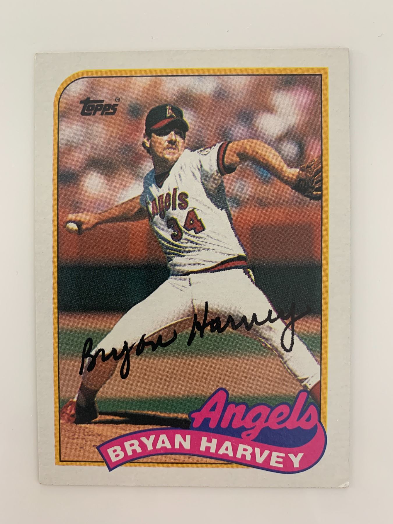 Bryan Harvey signed baseball card. Topps 1989. 2x3 inches