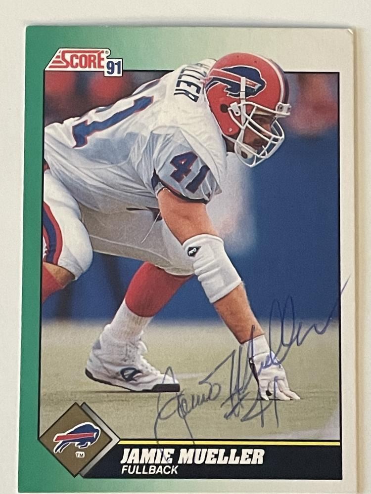 Buffalo Bulls Jamie Mueller signed 1991 Score trading card. 2x3 inches