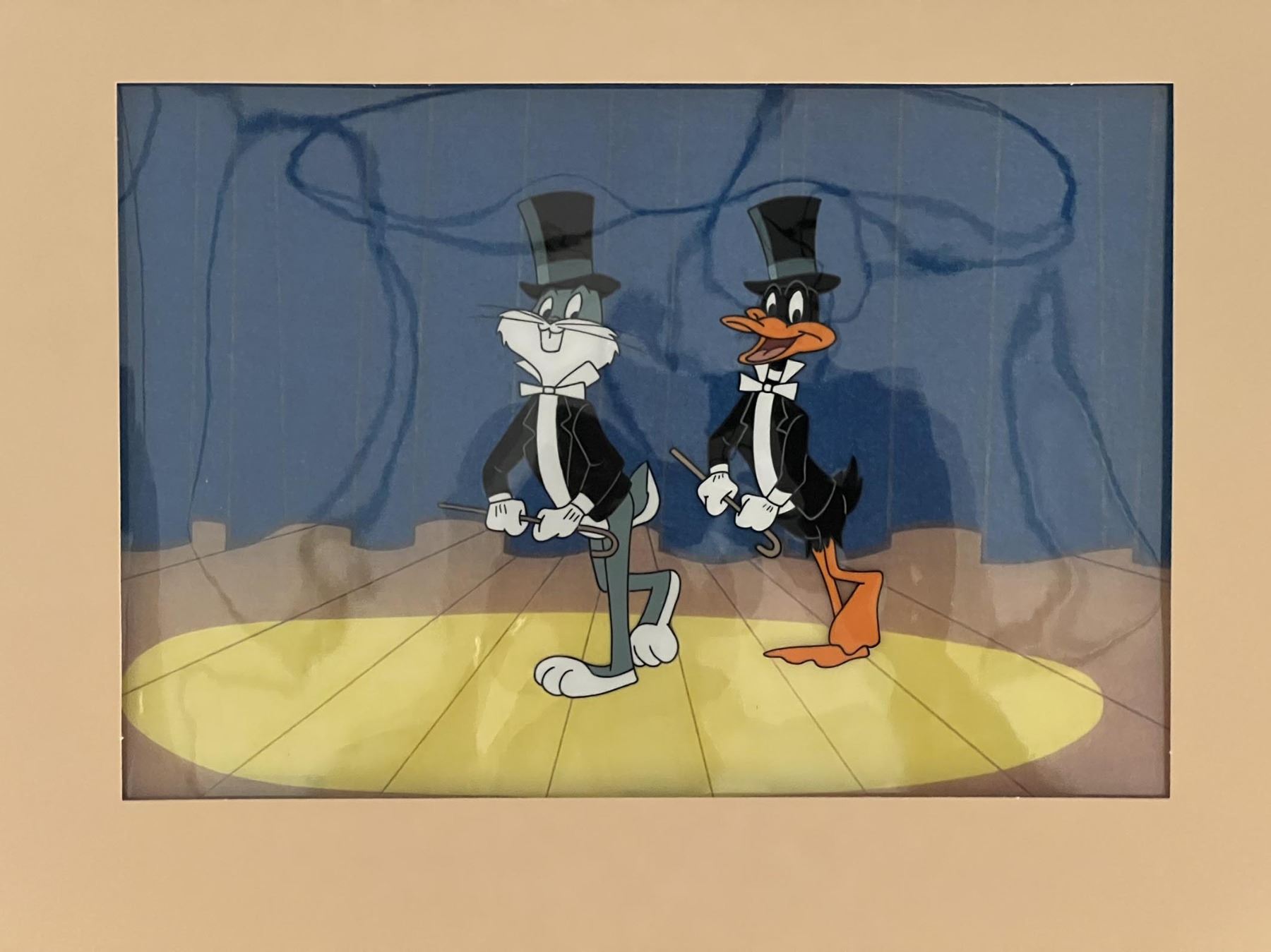 Bugs Bunny and Daffy Duck, original animation cel in custom matte. 11x14 inches