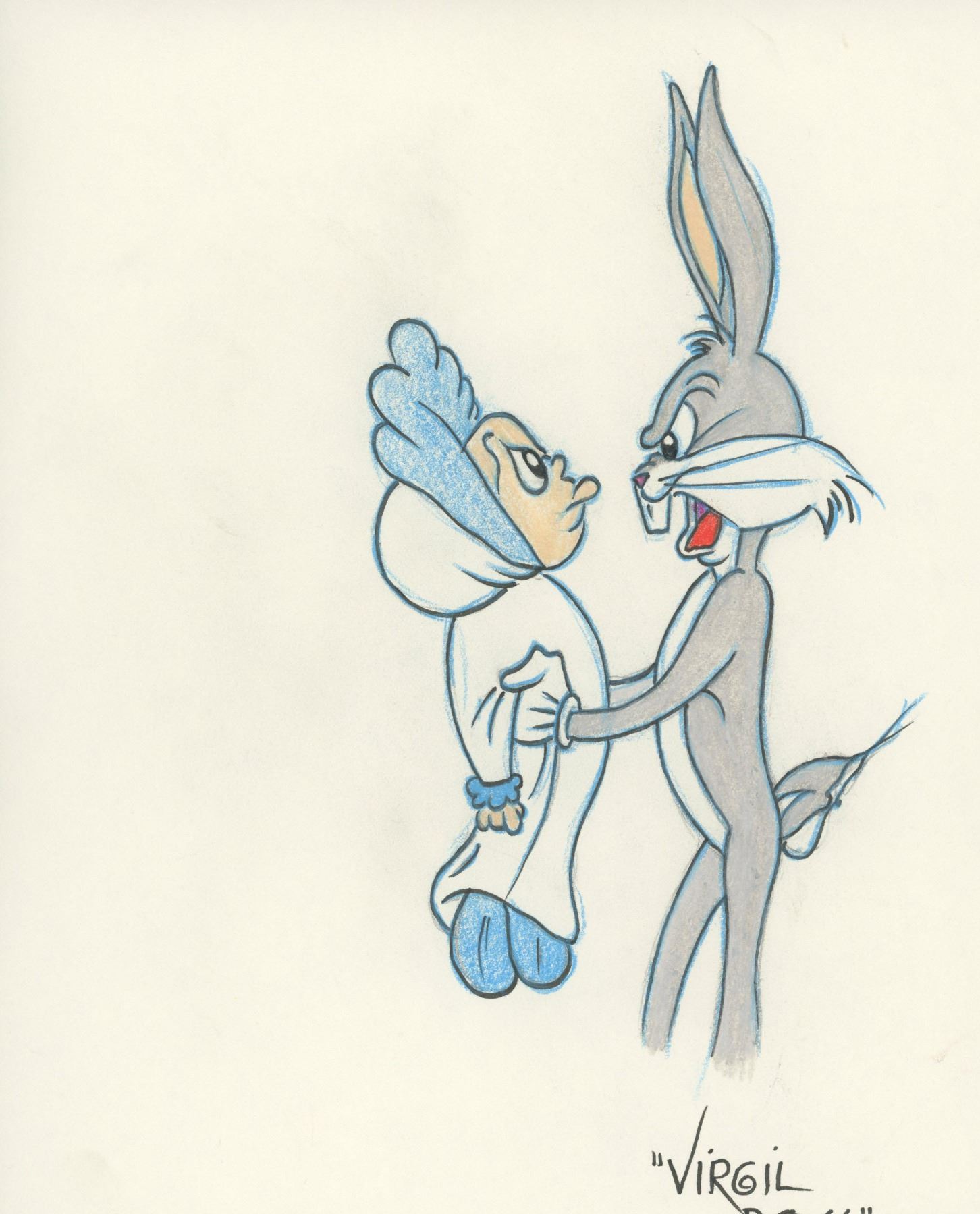 Original Bugs Bunny sketch hand drawn and signed by Virgil Ross.