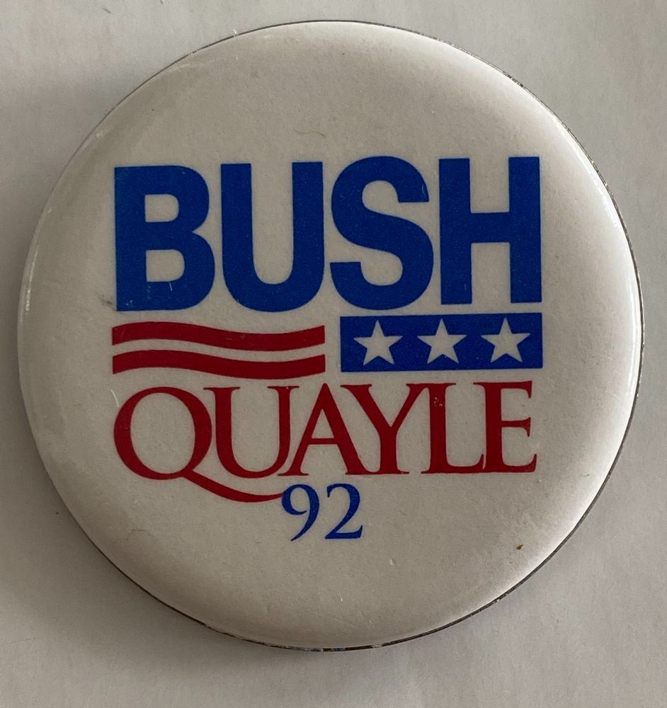 Bush-Quayle 1992 Presidential campaign pin. 1 inch