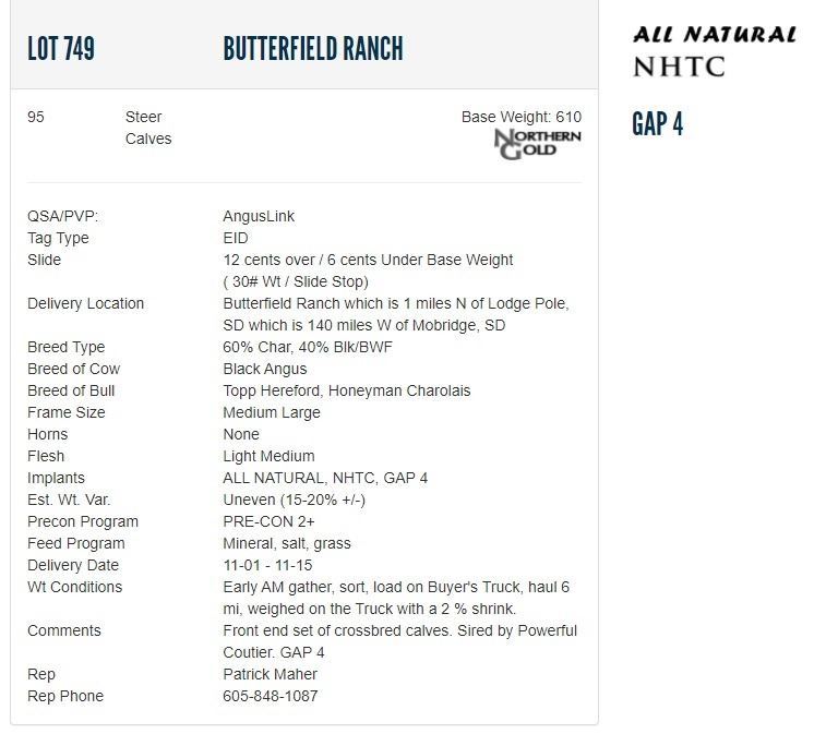Butterfield Ranch - 95 Steers; Base Weight: 610