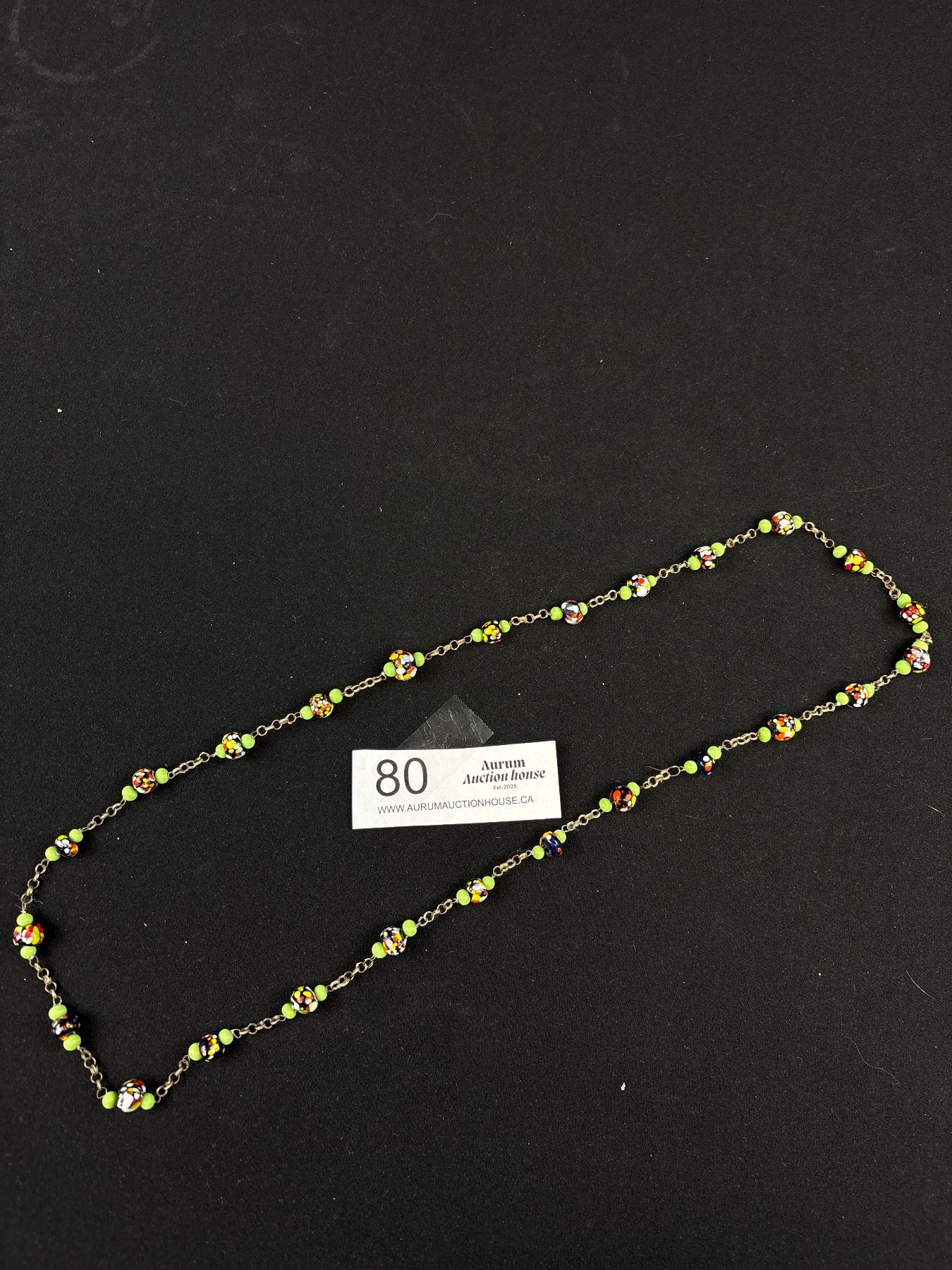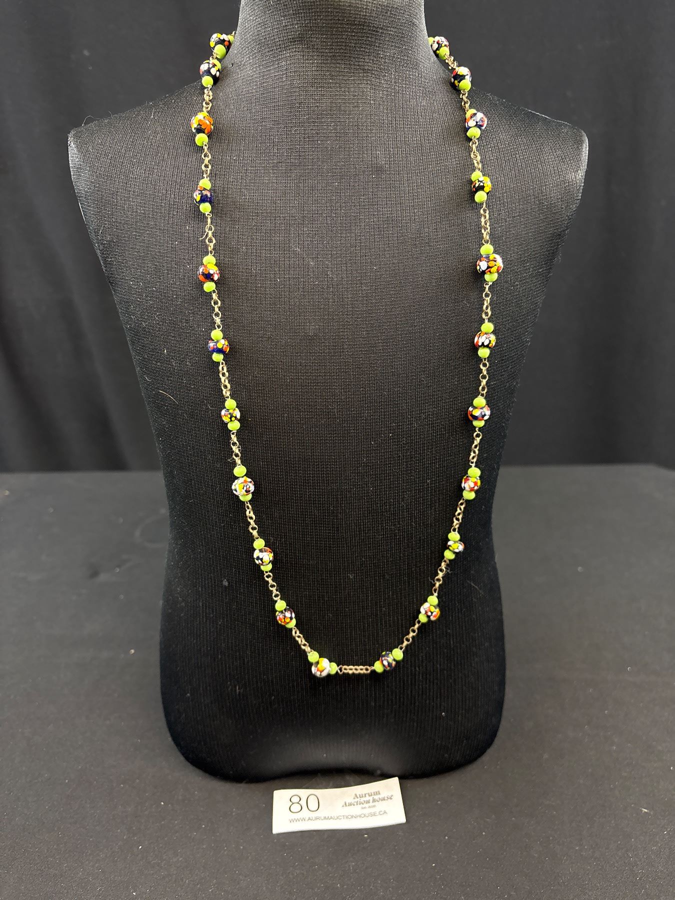 C.1900 Muriano Glass Bead Necklace on Chain Beauty!