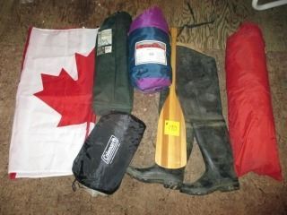 CANADIAN FLAG, DOUBLE AIR MATTRESS, SLEEPING BAG, FOLDING TABLE, TENT,