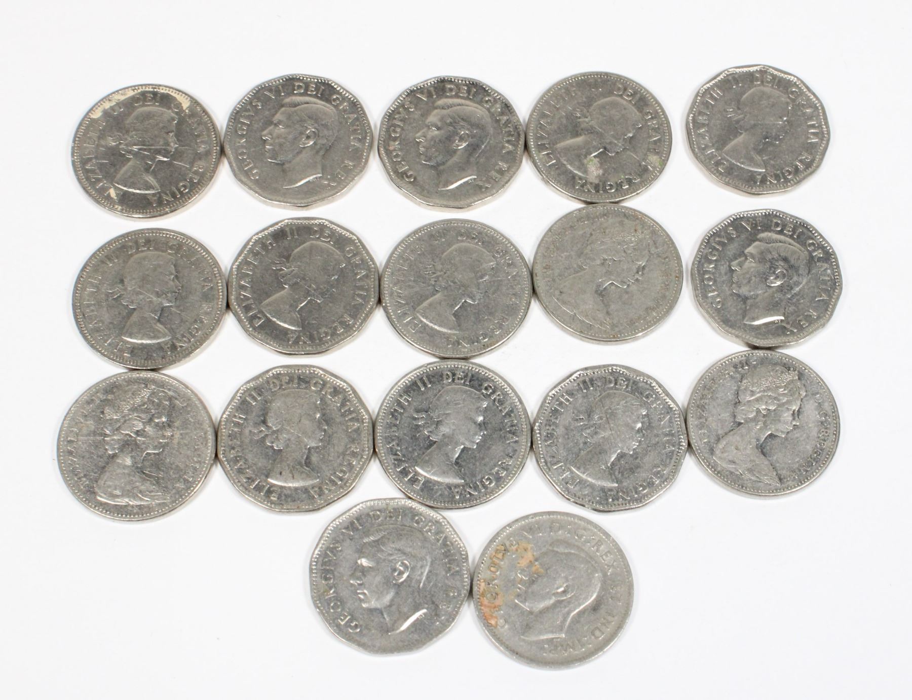 LOT OF CANADIAN NICKELS INCLUDING ONE FROM 1940, MOST FROM 50'S AND 60'S