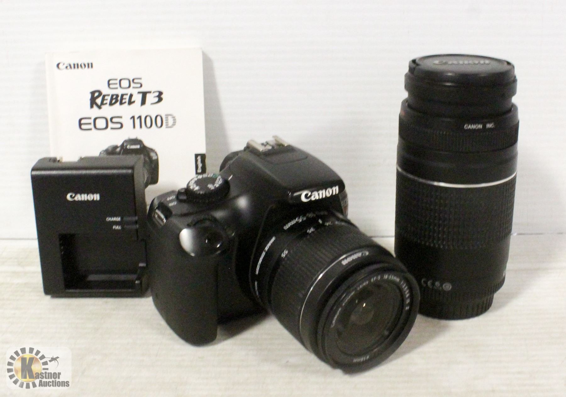 CANON REBEL EOS T3 W/ 18/55 + 75/300MM LENSES