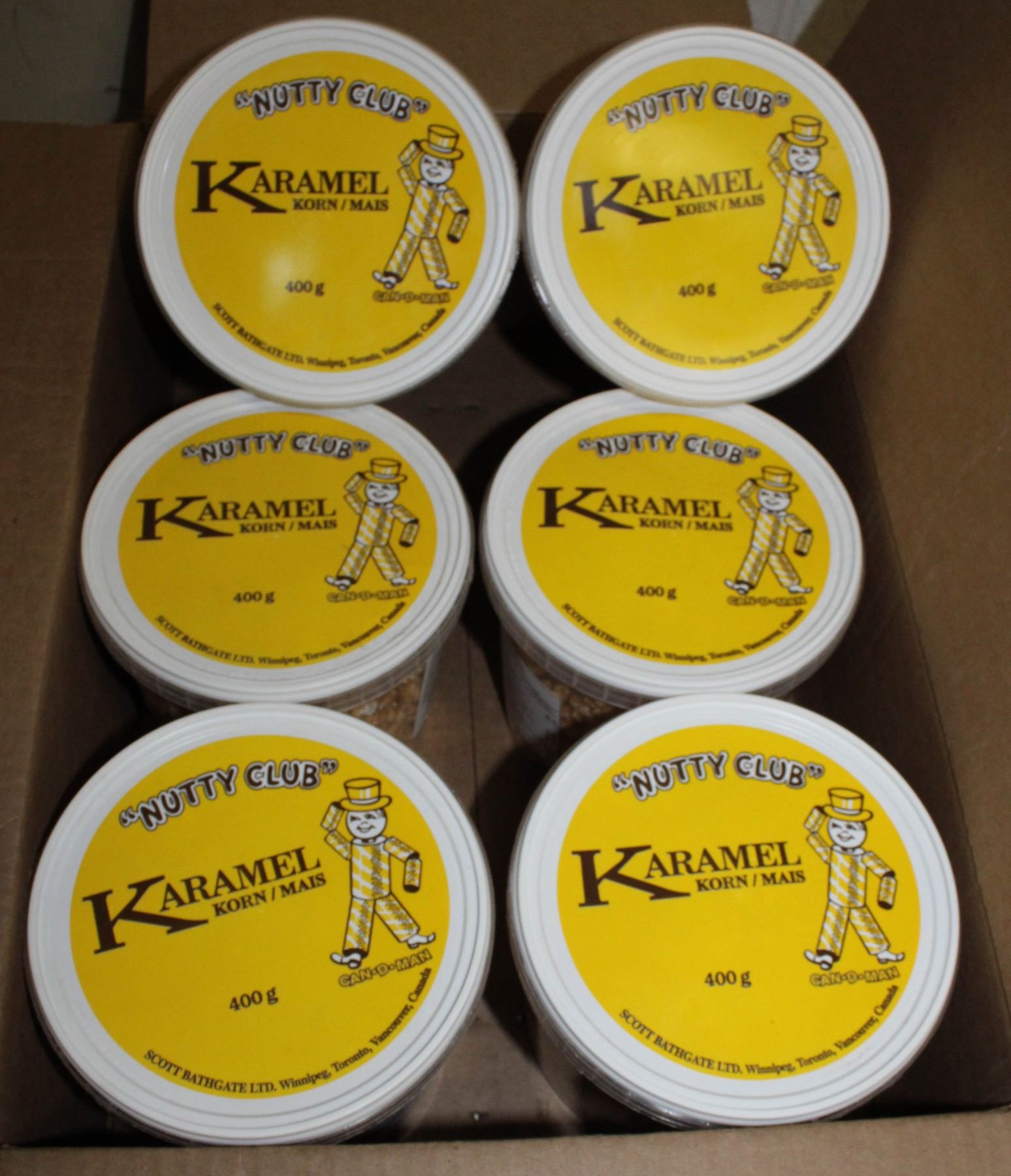 CASE LOT OF NUTTY CLUB KARMEL CORN TUBS SIX 400G