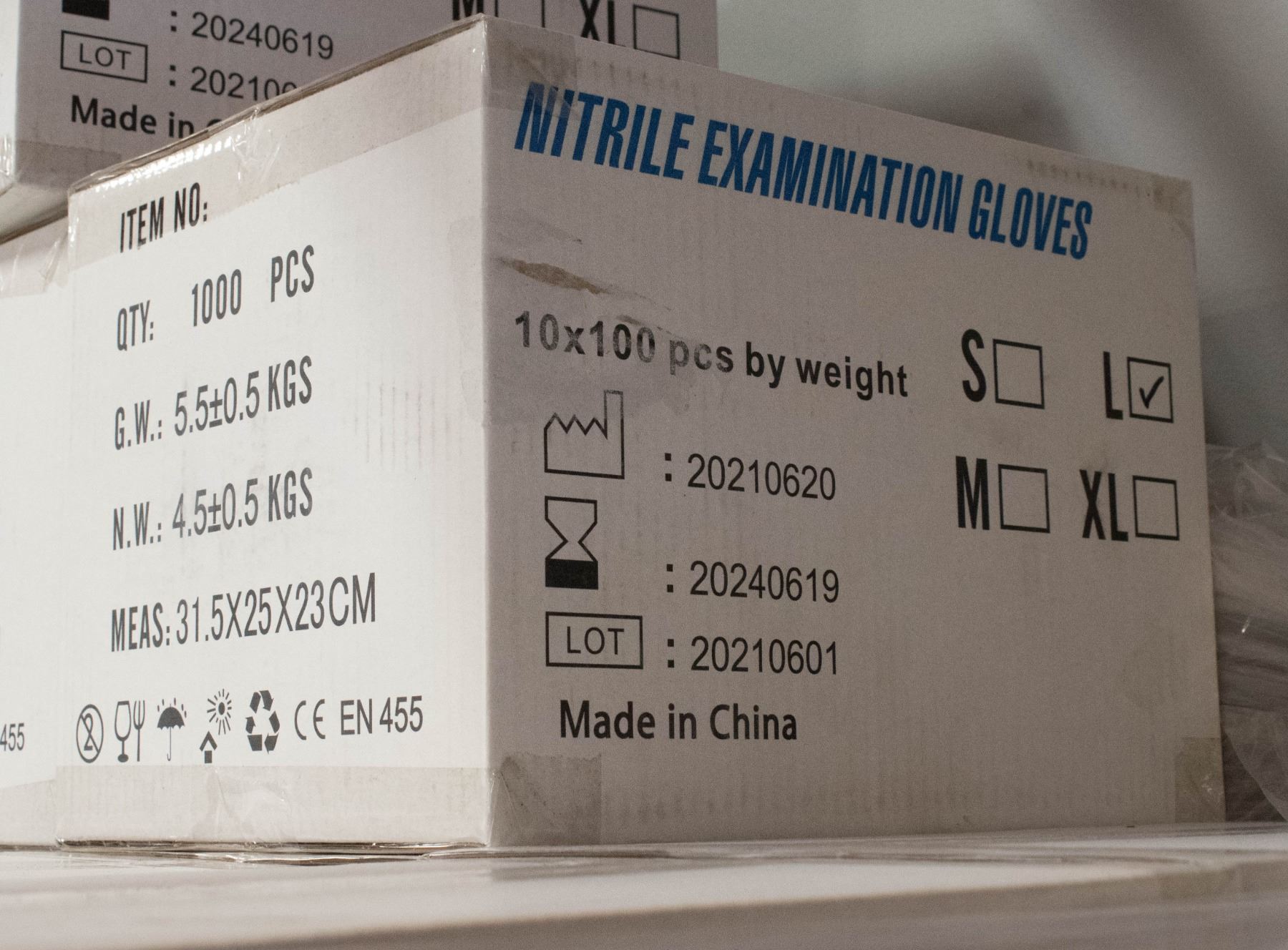 CASE WITH 1000 SIZE LARGE NITRILE EXAM GLOVES