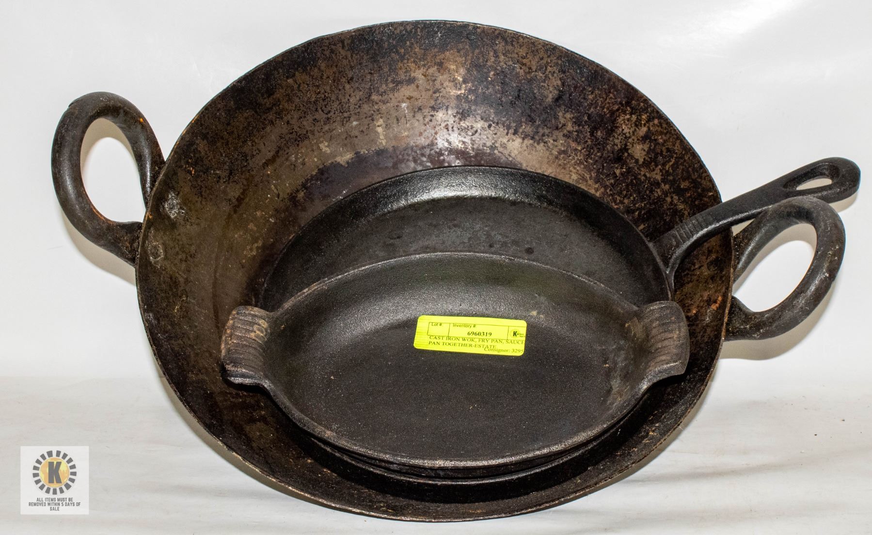 CAST IRON WOK, FRY PAN, SAUCE PAN TOGETHER-ESTATE